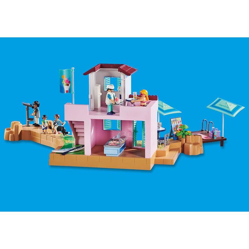 As mesas em frente à sorveteria e o terraço no último andar convidam a tomar um sorvete. Os banhistas e as pessoas que passeiam podem levar o sorvete e caminhar ao longo do passeio na praia. Para as crianças é um delicioso lanche e para os adultos uma opção refrescante! Escolha seu sabor favorito, ou juntos todos que quer experimentar. vem com 108 peças.