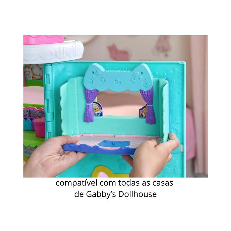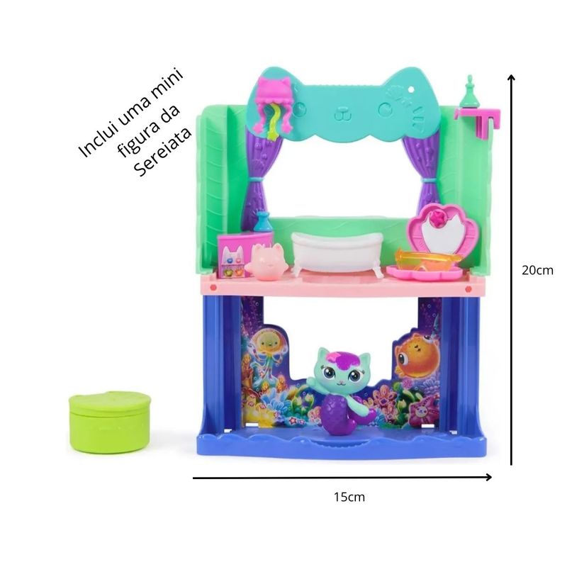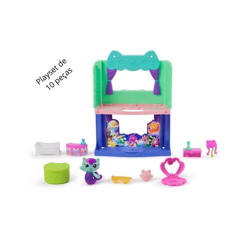 Conteúdo: Playset Casa Mágica de Gabby banheiro Spa Incrível da Sereiata, com 10 peças.