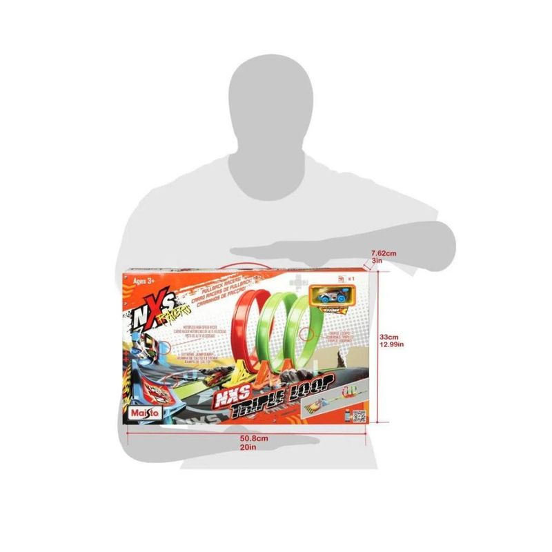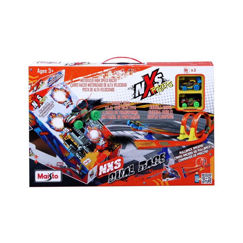 Ao abrir a caixa do MAISTO NXS Racer Playset, você é imediatamente transportado para um mundo onde a alta velocidade e a competição feroz reinam supremas.