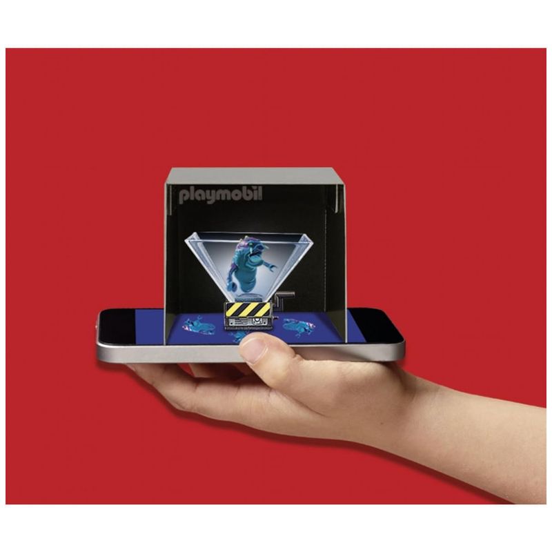 Quando utilizado com o aplicativo gratuito Playmobil instalado em smartphone ou tablet, o cone transparente da armadilha atua como projeção para exibir imagens de diferentes fantasmas, ampliando as possibilidades de brincadeira temática. O produto é indicado para crianças a partir de 6 anos, com foco em encenação de missões de caça aos fantasmas.?