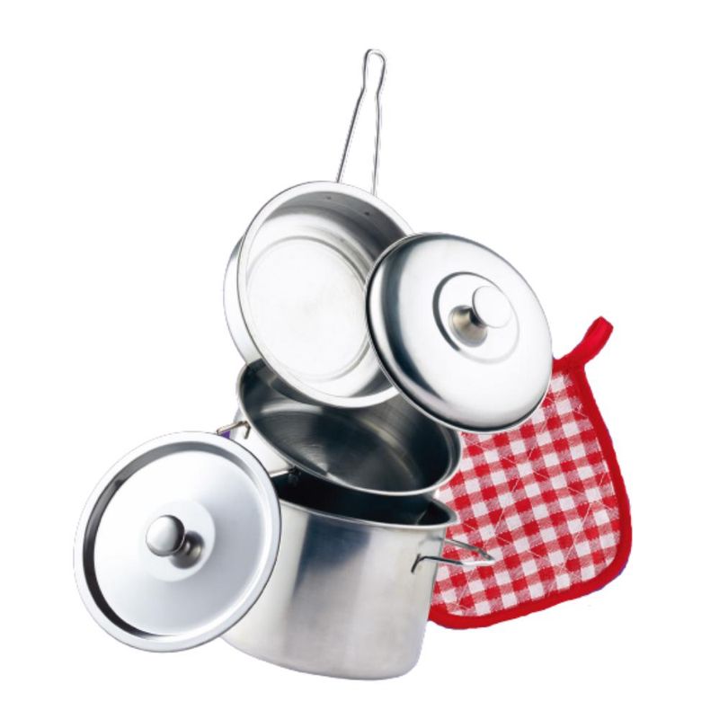 Vamos Cozinhar é um kit excelente para que a criança possa desenvolver a imaginação, coordenação motora e a socialização. As panelinhas são feitas de metal, representando as panelas utilizadas no cotidiano.