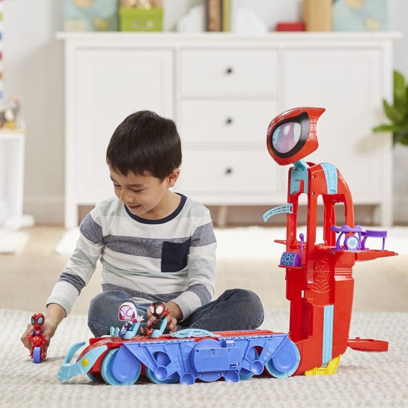 QG DO ARANHA: Este divertido QG 02 em 01 converte do modo veículo grande para o modo QG com torre de 55 cm de altura e diversos andares, com luzes e sons; MODO VEÍCULO: O modo veículo deste brinquedo Spidey and His Amazing Friends tem 55 cm de comprimento e espaço no cockpit para 03 figuras (figura Homem-Aranha incluída. Outras figuras vendidas separadamente); MODO QG: Com uma conversão simples, as crianças podem brincar no modo QQ de 55 cm de altura com rampa para a motocicleta do Homem-Aranha, armadilha de teia, palco, centro de comando e teia para balançar; LUZES E SONS: Este brinquedo Spidey and His Amazing Friends tem efeitos de luz e mais de 24 sons e frases inspirados no show da Marvel; INCLUI FIGURA, MOTO E ACESSÓRIOS: Inclui figura articulável do Homem-Aranha que pode ser encaixada na motocicleta incluída e 03 acessórios. Muita diversão com este brinquedo Spidey and His Amazing Friends! Este divertido QG 02 em 01 converte do modo veículo grande para o modo QG com torre de 60 cm de altura e diversos andares, com luzes e sons. O modo veículo tem 55 cm de comprimento e espaço no cockpit para 3 figuras. Com uma conversão simples, as crianças podem brincar no modo QQ de 55 cm de altura com rampa para a motocicleta do Homem-Aranha, armadilha de teia, palco, centro de comando e teia para balançar. Este brinquedo tem efeitos de luz e mais de 24 sons e frases inspirados no show da Marvel. Excelente presente de aniversário ou outras celebrações para meninos e meninas a partir dos 03 anos que adoram aventuras de super-heróis.