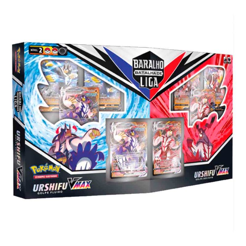 Escolha o momento certo e ataque com um poder brutal ou desfira milhares de golpes, aproximando-se cada vez mais da vitória! Urshifu Golpe Decisivo VMAX ou Urshifu Golpe Fluido VMAX estão ao seu lado nestes baralhos poderosos, que já estão prontos para Treinadores experientes usarem em batalhas de Liga. Com uma grande variedade de cartas, incluindo cartas poderosas raras e um conjunto bem elaborado de cartas de Pokémon e de Treinador, os baralhos Batalha de Liga Urshifu Golpe Decisivo VMAX e Urshifu Golpe Fluido VMAX fazem mais do que apenas trazer um dos Pokémon mais populares da região de Galar para a sua coleção: eles reúnem todos os elementos que você precisa na sua próxima partida contra amigos e vizinhos, em pessoa ou online! Estes baralhos estão prontos para serem jogados e repletos de combinações potentes com Urshifu Golpe Decisivo VMAX ou Urshifu Golpe Fluido VMAX!