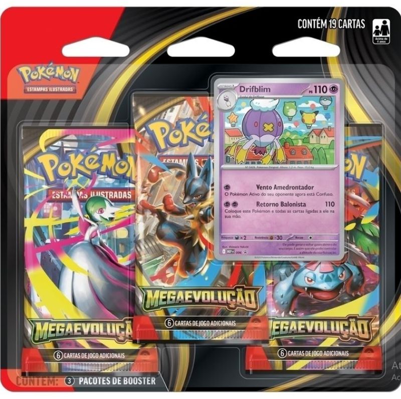 Prepare-se para turbinar sua coleção com o incrível Blister Triplo Mega Evolução! Este produto exclusivo traz 3 boosters Pokémon TCG recheados de cartas para você aumentar suas estratégias de batalha e fortalecer seu baralho.