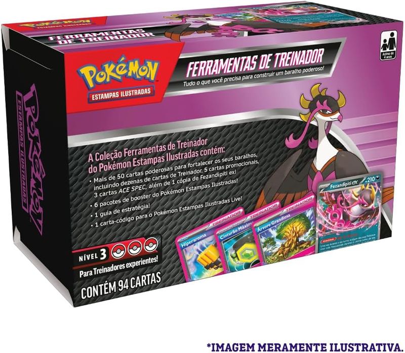 - Mais de 50 cartas poderosas para fortalecer seus baralhos, incluindo dezenas de cartas de Treinador, 5 cartas promocionais, 3 cartas ACE SPEC e 1 cópia de Fezandipiti ex.
