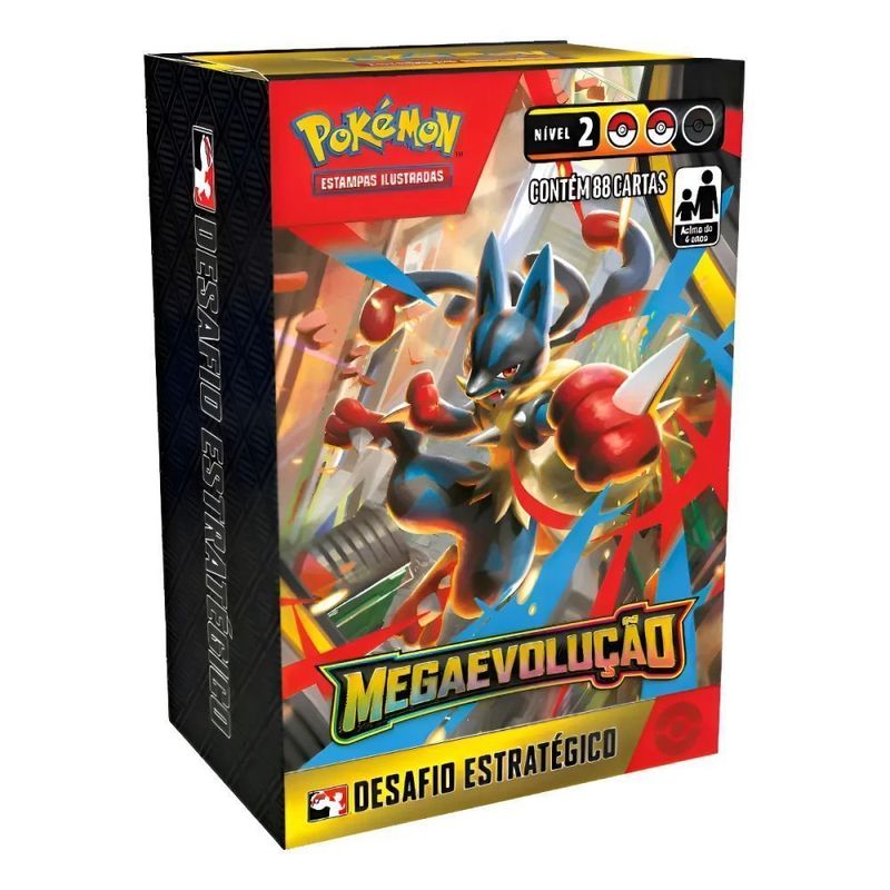 Pokémon de todos os tipos colocam tudo em jogo para demonstrar sua força e se tornar Pokémon ex de Megaevolução! Comande a aura impetuosa de Mega Lucario ex, acolha o poder transbordante de Mega Gardevoir ex e una-se a outros desses poderosos Pokémon, que esbanjam ataques devastadores e PS fora da curva. Mas muito cuidado com sua estratégia, já que mais poderes sempre trazem mais riscos! Escolha seus parceiros Pokémon e prepare-se para as maiores batalhas que você já travou na expansão Megaevolução do Pokémon Estampas Ilustradas!