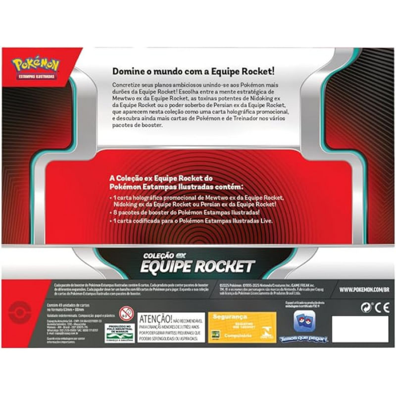 Prepare-se para o lado sombrio do universo Pokémon com a Box Equipe Rocket Mewtwo, Persian e Nidoking ex, da Copag! Esta edição especial traz em destaque um dos poderosos Pokémon Mewtwo ex, Persian ex ou Nidoking ex, acompanhados de uma seleção estratégica de cartas inspiradas na icônica Equipe Rocket, os vilões clássicos do mundo Pokémon.