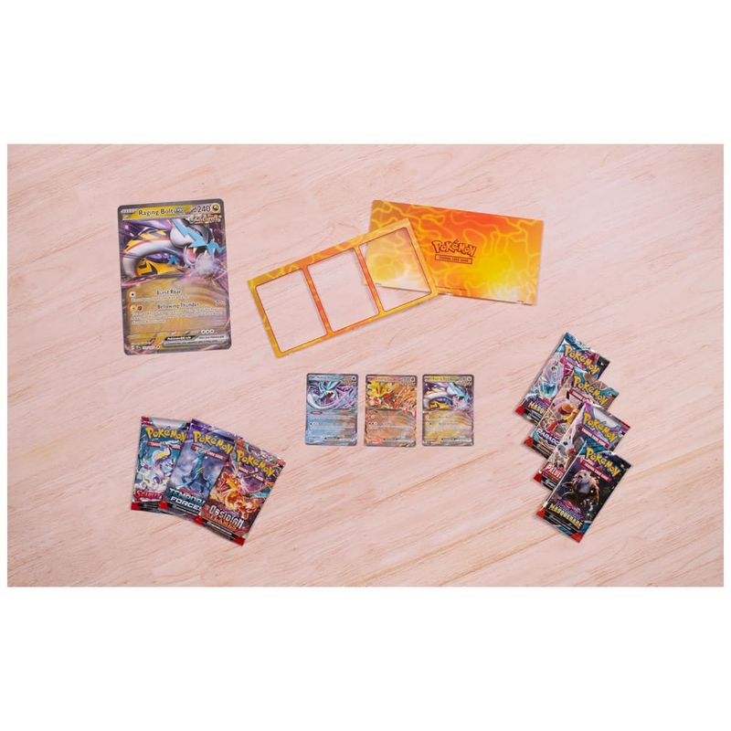 Esta coleção também vem com uma carta promocional em tamanho gigante do Raging Bolt ex, uma peça impressionante para qualquer coleção.
