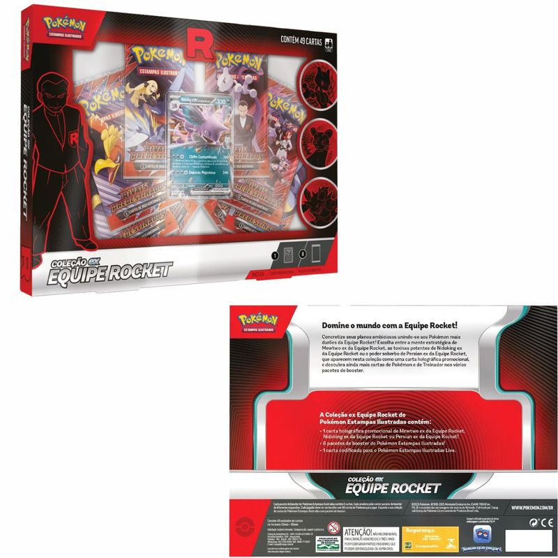 Escolha entre a mente estratégica de Mewtwo ex da Equipe Rocket, as toxinas potentes de Nidoking ex da Equipe Rocket ou o poder soberbo de Persian ex da Equipe Rocket, que aparecem nesta coleção como uma carta holográfica promocional, e descubra ainda mais cartas de Pokémon e de Treinador nos vários pacotes de booster.