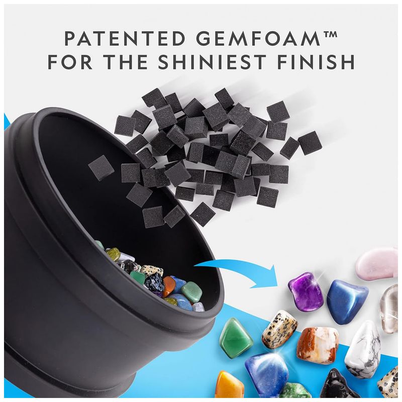 USE GEMFOAM PARA RESULTADOS DESLUMBRANTES Este kit de polimento de rochas se destaca dos outros graças ao nosso e reutilizável polidor de rochas GemFoam Adicione GemFoam e água ao barril após o estágio final de queda, suas joias terão um brilho incrível