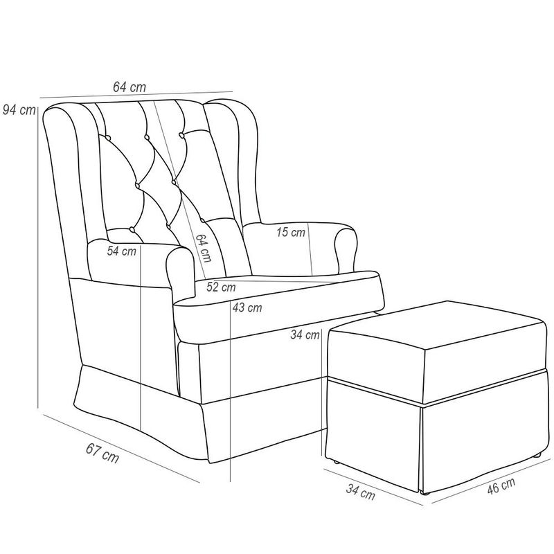 Altura do assento ao braço: 15 cm Dimensões do Puff (L x A x P)