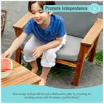 Poltrona infantil para área externa em madeira acácia, desenvolvida para oferecer um assento confortável e estável para crianças em jardins, pátios, varandas e ambientes de aprendizagem ao ar livre. O desenho baixo e ergonômico favorece o descanso, a leitura e momentos tranquilos ao ar livre, com proporções ajustadas para crianças pequenas.?