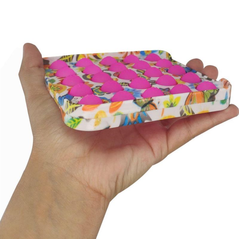 1 Pop It Fidget Colorido com bolhas rosa em formato Quadrado.3 meses de garantia contra defeito de fabricação