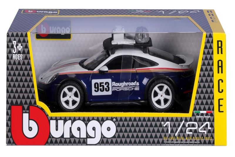 Porsche 911 DakarMarca do produto: Bburago.Coleção: Race.Escala: 1/24 (aproximadamente 18 cm de comprimento).Pneus de Borracha.Abre as Portas.Acompanha Base Expositora com o nome do Carro.Miniatura em Metal com partes de plástico.