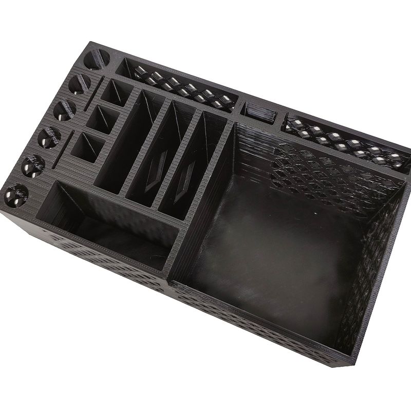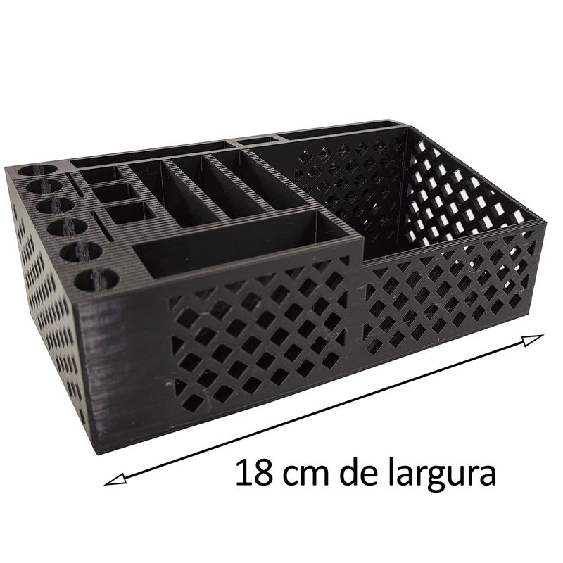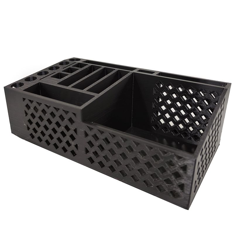 Com um design moderno, este organizador combina estilo e praticidade, mantendo seus itens essenciais ao alcance. Produzido com tecnologia de impressão 3D, este porta-caneta possui um acabamento detalhado e robusto, ideal para qualquer ambiente de escritório.