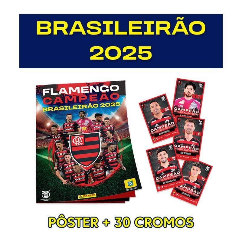 O pôster Ilustrado Oficial do Campeão do Brasileirão 2025 reúne o resultado de todos os jogos e fotos exclusivas da campanha vitoriosa que garantiu o título do clube! Inclui 30 cromos para colar (de 24 jogadores + escudo + comemorações). Formato: 24,5 cm x 34 cm (fechado) e 98 cm x 68 cm (aberto) 30 cromos (24 jogadores + 2 escudos + 4 comemorações) Coleção completa