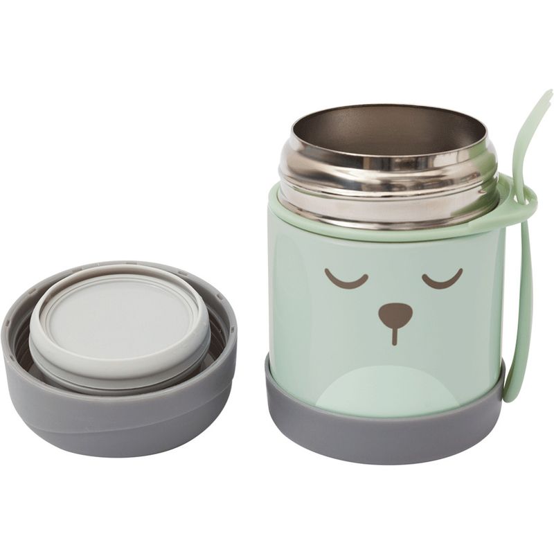 O Pote térmico da Buba acompanha talher e é ideal para refeições fora de casa, pois ajuda a conservar a temperatura dos alimentos (quente ou fria) por mais de 5 horas. Pode ser utilizado para armazenar papinhas, frutas e legumes. Produzido em aço inoxidável com parede dupla, é resistente e higiênico, ótimo para levar em passeios e viagens. Conheça toda a linha Gumy, os bebês vão se apaixonar!