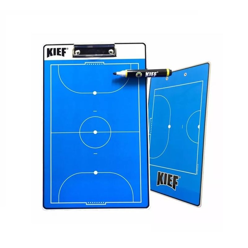 A Prancheta Dupla Face KIEF é indispensável para os treinadores transmitirem de forma eficiente as estratégias do jogo. Tem como vantagem duas opções para visualização: na face da frente a quadra inteira e na face de trás meia quadra. Confeccionada em Placa de Poliestireno com um CLIP para a fixação de papéis e acompanha caneta com limpeza dos traços a seco.Características: