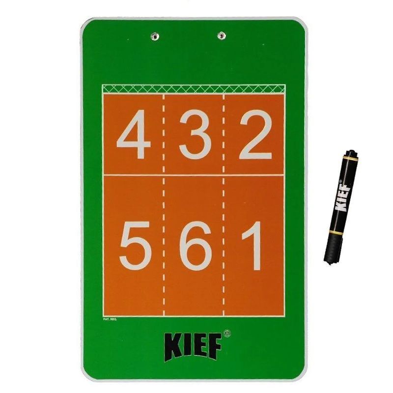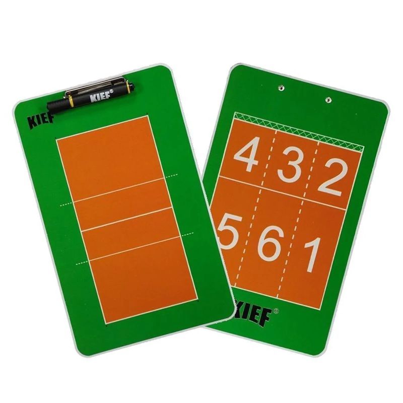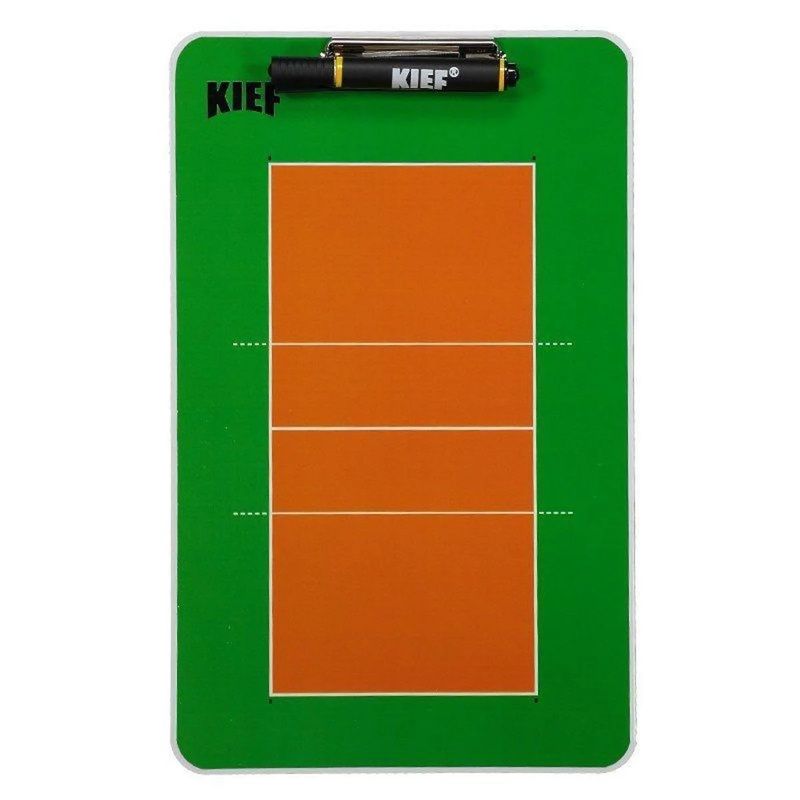 Prancheta Tática Dupla Face de Voleibol fabricada pela Kief. Possui duas opções para demonstração numa mesma prancheta: face anterior com quadra inteira e face posterior com meia quadra. Acompanha caneta marcador de quadro branco sistema de limpeza a seco, não é magnética.