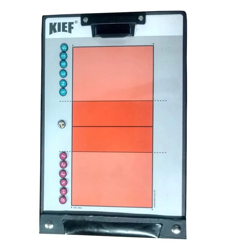 Com a prancheta tática da Kief você cria suas estratégias de jogo e instrui sua equipe para dominarem os sets. Projetada para o vôlei, a prancheta magnética conta com uma caneta e 12 peças com imãs, que simulam os jogadores e a bola.Informações Técnicas
