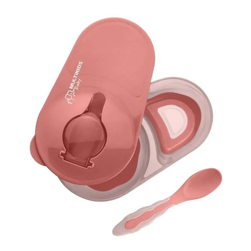 O Prato Fundo com Divisórias e Colher da Multikids Baby possui tampa com colher acoplada e 2 divisórias para diferentes alimentos para mais praticidade e base deslizante para maior segurança.