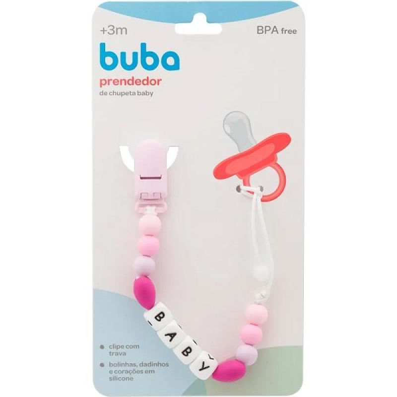 O PRENDEDOR DE CHUPETA BABY BUBA é ideal para manter a chupeta limpa e acessível a pequena, evitando que ela caia.