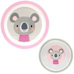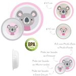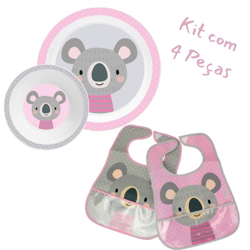 Presente Chá Bebê Enxoval Menina 4 Peças Coala - Pratinho + Tigela + 2 Babadores Impermeáveis Laváveis - Original Clingo