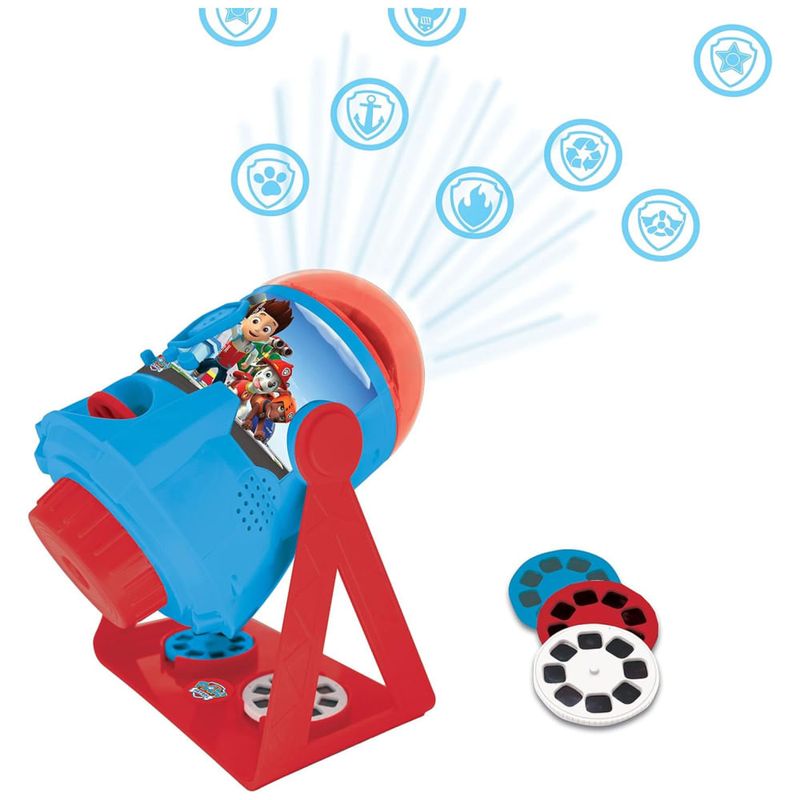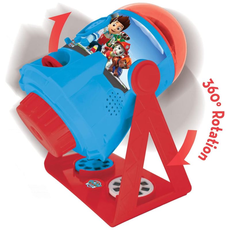 Projetor de histórias 3 em 1 Paw Patrol com sons e imagens intercambiáveis. O kit inclui 3 discos com 24 imagens do espetáculo, 2 cúpulas mostrando personagens Paw Patrol e um livreto para se divertir com os personagens. Desenvolva a criatividade, a imaginação e a aprendizagem de vocabulário enquanto cria histórias com seus personagens favoritos projetados nas paredes. O projetor também reproduz melodias inspiradas no universo Paw Patrol para guiá lo em suas descobertas. Possui um temporizador de 15 ou 30 minutos e funciona com bateria sem fio.