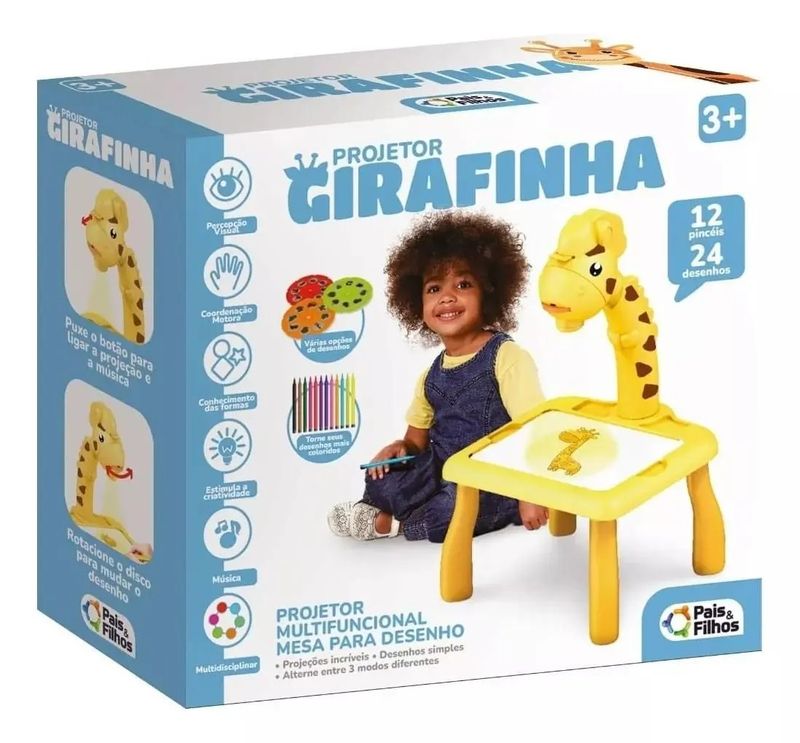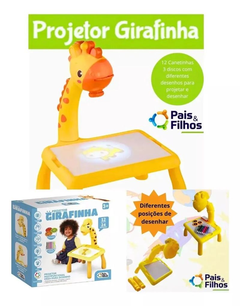 Projetor Girafinha Desenhos Infantil Pais E Filhos Transforme o quarto das crianças em um mundo de magia e diversão com o Projetor Girafinha Desenhos Infantil da Pais e Filhos! O Projetor Girafinha Desenhos Infantil é um brinquedo multifuncional que proporciona momentos de criatividade e diversão únicos para os pequenos. Com o divertido design de uma girafinha, este brinquedo encantador estimula a percepção visual, coordenação motora e conhecimento das formas, além de estimular a criatividade de forma multidisciplinar. Diferenciais: Acompanha 12 canetinhas e 24 desenhos para projetar. Projeção nítida e de fácil visualização. Funciona com 3 modos diferentes para alternar entre desenhos simples. Design divertido e educativo. Mais sobre o Produto: Com o Projetor Girafinha Desenhos Infantil, as crianças podem criar suas próprias histórias, desenhos e cenários, estimulando a imaginação e a coordenação motora de forma lúdica. Ideal para ser utilizado em momentos de lazer em família ou para auxiliar no desenvolvimento cognitivo das crianças. Dicas de Uso: Para obter melhores resultados, recomenda-se utilizar o Projetor Girafinha Desenhos Infantil em ambientes escuros ou com pouca iluminação. As crianças podem alternar entre os 3 modos de projetos, escolher seus desenhos preferidos e colorir com as canetinhas inclusas. Após o uso, limpar o projetor e guardar cuidadosamente para prolongar a durabilidade do brinquedo. Ficha Técnica: Marca: Pais e Filhos Modelo: Projetor Girafinha Desenhos Infantil Conteúdo: 1 projetor, 12 canetinhas, 24 desenhos para projetar Idade Indicada: 3+ anos Alimentação: 3 baterias AG (inclusas) Imagens meramente ilustrativas, o produto e as cores podem variar de acordo com o apresentado na embalagem. O Projetor Girafinha Desenhos Infantil da Pais e Filhos proporciona diversão, criatividade e aprendizado para as crianças. Proporcione momentos mágicos e educativos com este incrível brinquedo!