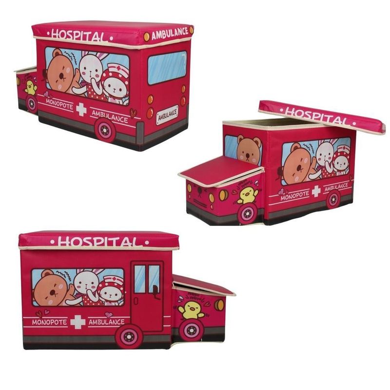 Vem com uma almofada acolchoada e confortável, com o tema de ÔNIBUS a criança estará estimulada a guardas seus brinquedos dentro do Puff Baú em formato de ônibus que é super divertido.