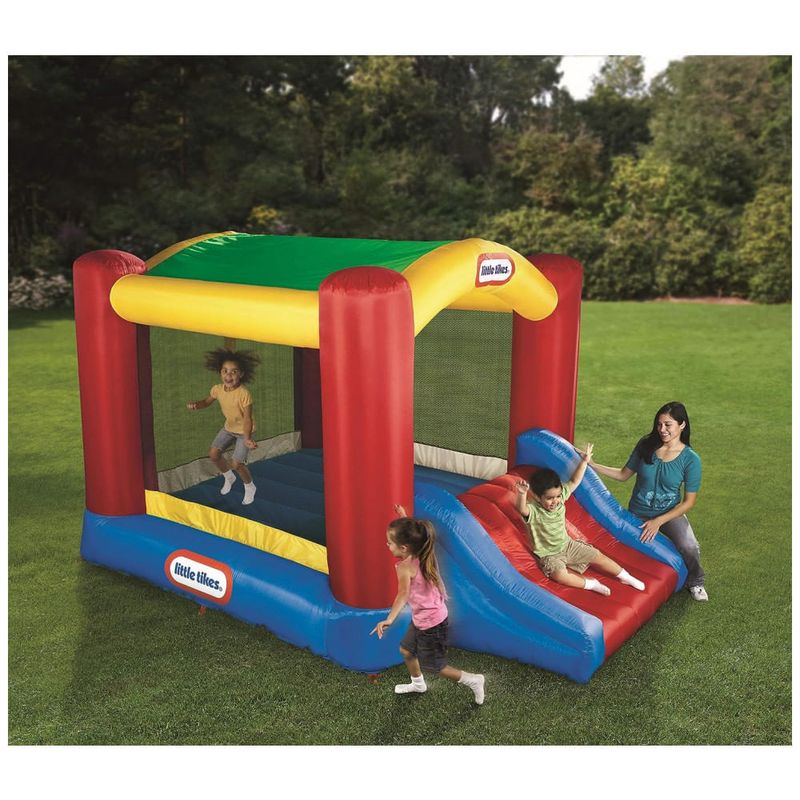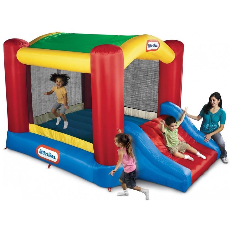VIAGEM NO LUGAR Estacas incluídas antes do segurança para um local, enquanto o ventilador para serviços pesados fornece fluxo de ar contínuo para manter as crianças pulando