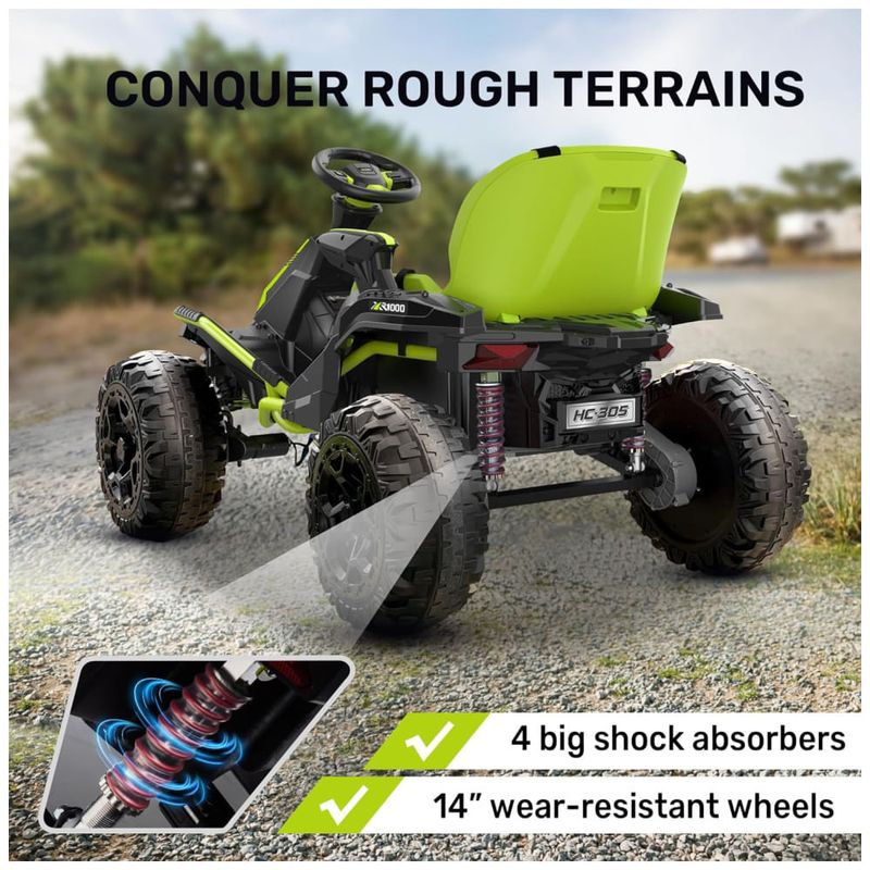 Este Buggy 24V 4WD é ideal para crianças grandes que amam aventuras. Com um espaçoso assento ajustável de 38 x 33 cm, capacidade de carga máxima de 58,96 quilos e faixa de velocidade de 5 km/h a 7,2 km/h, este carro é alimentado por uma bateria genuína de 24V e acionado por motores de acionamento 4x75w, gerando tensão estável e excelente potência. Com 2 marchas e opções 2WD e 4WD, este carro é perfeito para crianças de 3 a 8 anos que gostam de aventuras. O assento pode ser ajustado para frente e para trás em 3 posições diferentes, com faixa ajustável de 3,14 para acomodar a mudança de altura da criança e acompanhar o crescimento da criança. Além disso, o assento acolchoado e bastante espaço para as pernas permitem que o seu filho se sente confortavelmente e estique as pernas livremente.