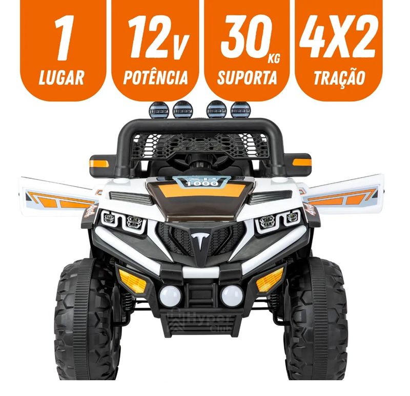 O Quadriciclo Elétrico Infantil UTV 4x2 12V da Zippy Toys transforma qualquer passeio em uma experiência de aventura com total controle e segurança. Com duas marchas, faróis em LED, portas que abrem, painel completo com USB, som real de motor e função ninar, ele entrega diversão realista e segura para crianças a partir de 3 anos. O sistema de aceleração gradual, o assento duplo confortável com encosto de cabeça e o pedal de aceleração/frenagem garantem uma condução suave e segura. Além disso, os pais podem assumir o comando via controle remoto, garantindo total tranquilidade. Criado para enfrentar pisos firmes e aventuras moderadas, o UTV combina potência 12V, rodas reforçadas e estrutura estável — perfeito para uso diário. BENEFÍCIOS E DIFERENCIAIS: Duas marchas: frente e ré