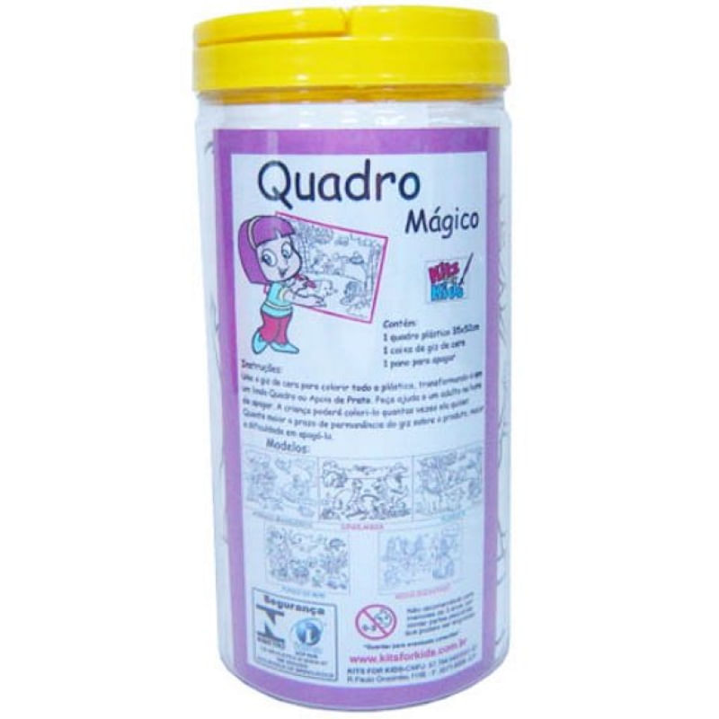 Composto por um Quadro Plástico (35x50cm) com lindo desenho impresso, 1 caixa de giz de cera, 1 pano para apagar.