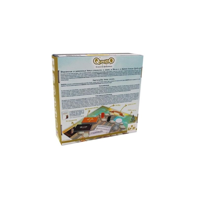 Quaestio é o jogo da Sabedoria da Pray Play. Responda se souber. Ou passe a oportunidade para ,outro jogador. Não sabe a resposta ou está em dúvida? Então cumpra o desafio no tempo da ampulheta para avançar pelo tabuleiro. Mas se errar a resposta... vai ter que voltar! Ganha aquele que alcançar a Sabedoria! O conteúdo desse jogo provem da obra O Catecismo das Crianças, do Monsenhor de Ségur, publicada pela Editora Loreto. Adquira também o livro para uma experiência completa. Benefícios desse jogo de tabuleiro católico: - Orar e brincar; - Ferramenta de aprendizagem; - Desenvolvimento espiritual e socialização. Idade | + 8 anos Jogadores | +2