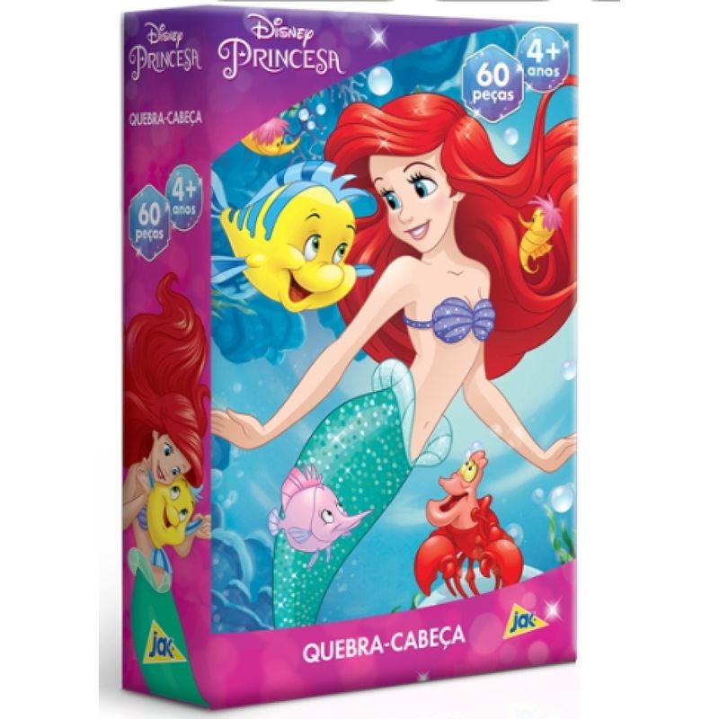 Quebra Cabeça - Ariel Pequena Sereia 60 peças As crianças vão se divertir montando esse lindo quebra-cabeça com a imagem da Ariel. A caixa é pratica para carregar, ideal para ser levado para qualquer lugar.