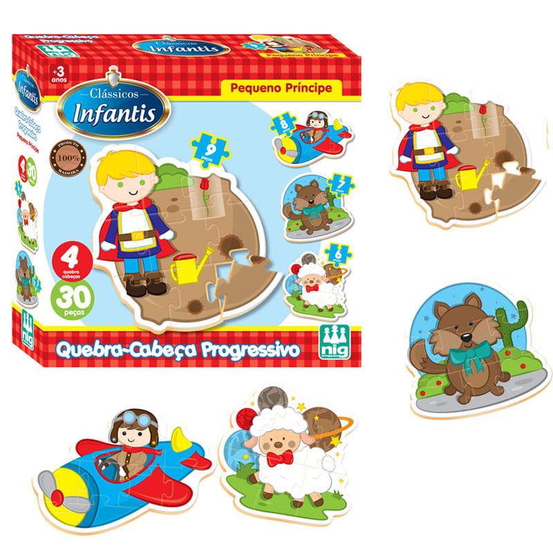 Quebra-Cabeça - Progressivo - Pequeno Príncipe - Madeira - 30 peças - Nig