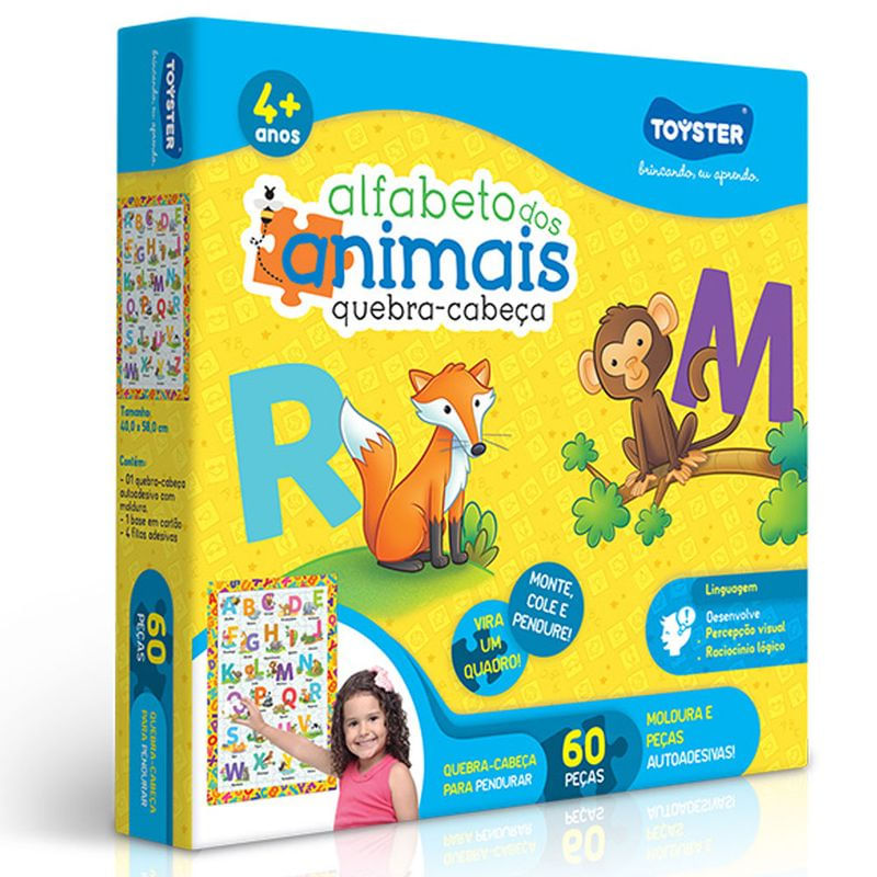 Aprenda o alfabeto montando este lindo quebra-cabeça de 60 peças! Ao brincar a criança irá aprender a sequência do alfabeto e associar cada letra a um animal que possui a inicial correspondente. A criança pode montar e desmontar várias vezes ou ainda optar por fazer um lindo quadro, com 40cm x 58cm! O quebra-cabeça é autoadesivo e acompanha base em cartão e fitas adesivas, para que a criança possa montar e pendurar seu quadro!