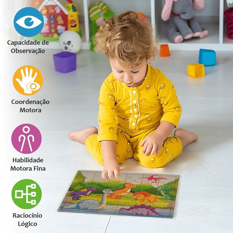 QUEBRA CABEÇA DINOSSAUROS 30 PEÇAS MADEIRA