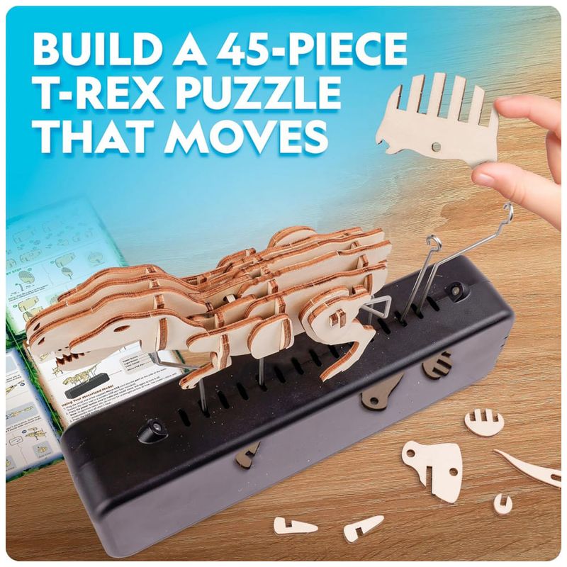 Transforme a construção de modelos em uma experiência pré-histórica com o Quebra-Cabeça 3D Dinossauro T.?Rex Motorizado da National?Geographic. Este brinquedo educativo permite que crianças e adultos montem um dinossauro em madeira de 50 peças, estimulando habilidades manuais, raciocínio lógico e criatividade. A base motorizada movimenta o T.?Rex e ilumina o modelo com 8 modos de luz multicolor — incluindo sete cores sólidas e um modo de ciclo automático — oferecendo uma experiência interativa que também funciona como luminária decorativa.