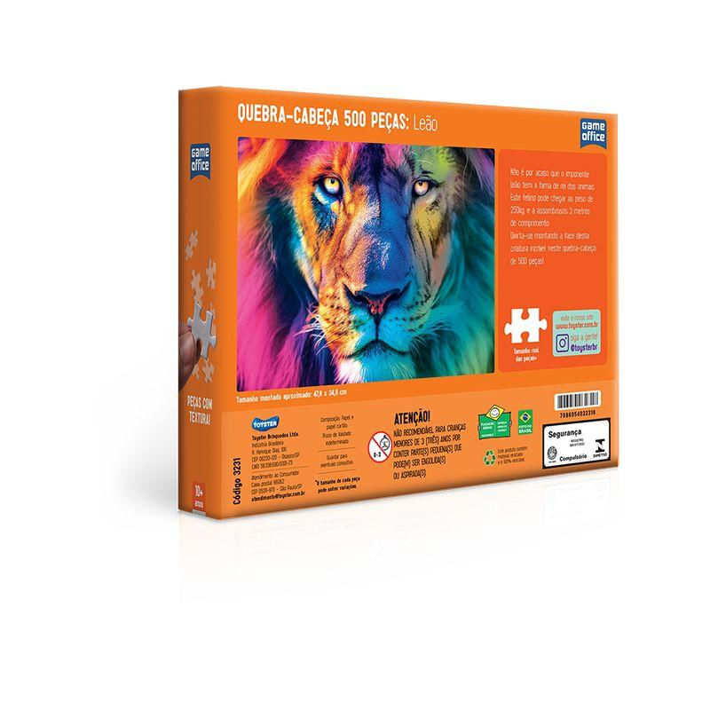 Quebra-Cabeça 500 Peças Leão - Toyster - ToysterTransforme sua diversão em arte com o Quebra-Cabeça 500 Peças Leão - Toyster da Toyster!Criado com um padrão internacional de qualidade, cada peça deste quebra-cabeça foi desenvolvida para um encaixe suave e preciso, proporcionando uma experiência única ao montar a imponente face do leão. Com certificação de qualidade, este produto é garantia de diversão e entretenimento para todas as idades.