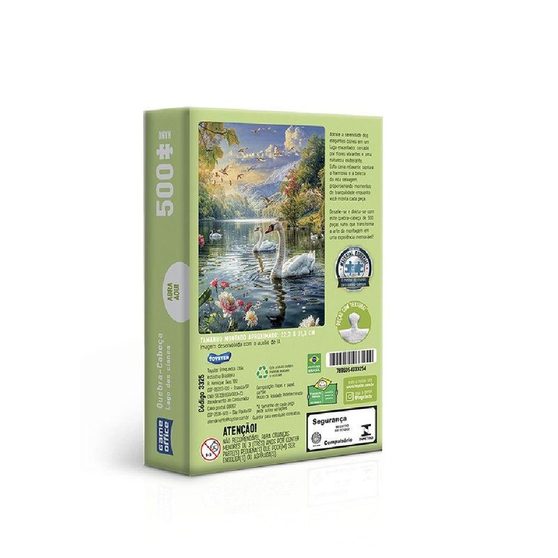 Marca: Toyster;Nome do produto: Quebra-Cabeça 500 Peças Nano Lago dos Cisnes;Idade recomendada: A partir de 10 anos;Selo Inmetro: 000517/2022;Contém: 500 peças.