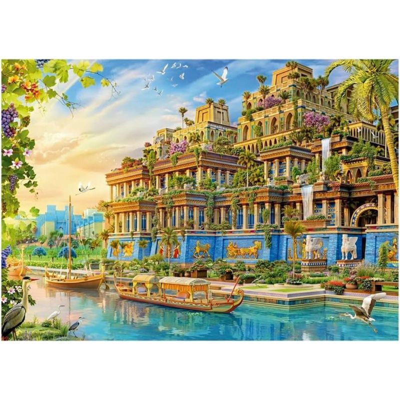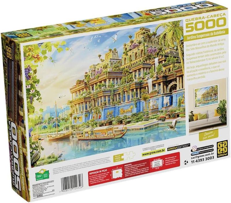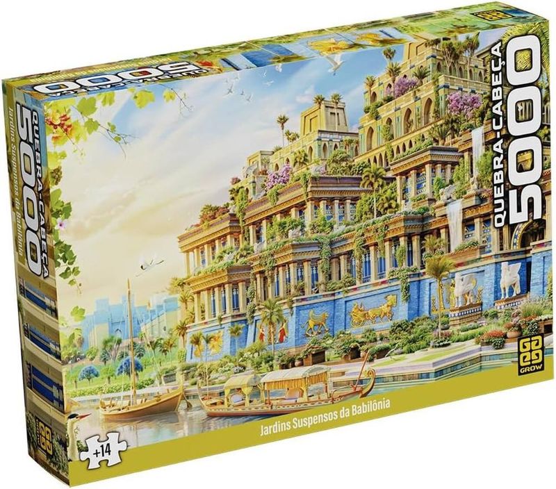 AVISO: IMAGENS MERAMENTE ILUSTRATIVAS!! Segundo relatos históricos, essa obra-prima teria sido erguida no século VI a.C. pelo rei Nabucodonosor II, como um presente de amor. Seus terraços exuberantes, repletos de flores e cascatas, inspiram até hoje artistas, historiadores e sonhadores do mundo todo. Mesmo após séculos, arqueólogos ainda debatem sua real localização e existência, o que torna essa maravilha ainda mais fascinante. Agora, você pode reviver esse mistério em forma de arte, paciência e diversão ? direto da sua casa. Idade: A partir de 14 anos Número de peças: 5000 peças Tamanho da Imagem depois de Montado: 137,0 x 97,0 cm Marca: Grow