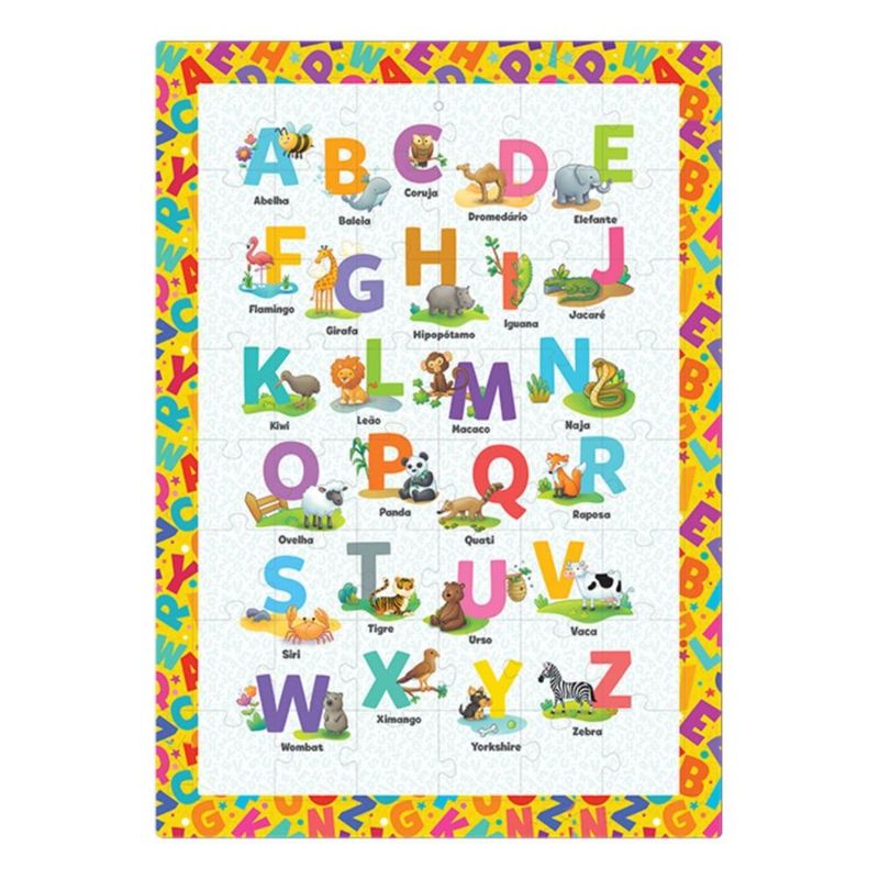 Quebra-Cabeça 60 Peças - Alfabeto dos Animais Adequado para crianças Estimula a habilidade motora Desenvolve raciocínio lógico e linguagem Embalagem com tampa e fundo, fácil de abrir e fechar Ótimo para guardar o produto, aumentando sua durabilidade