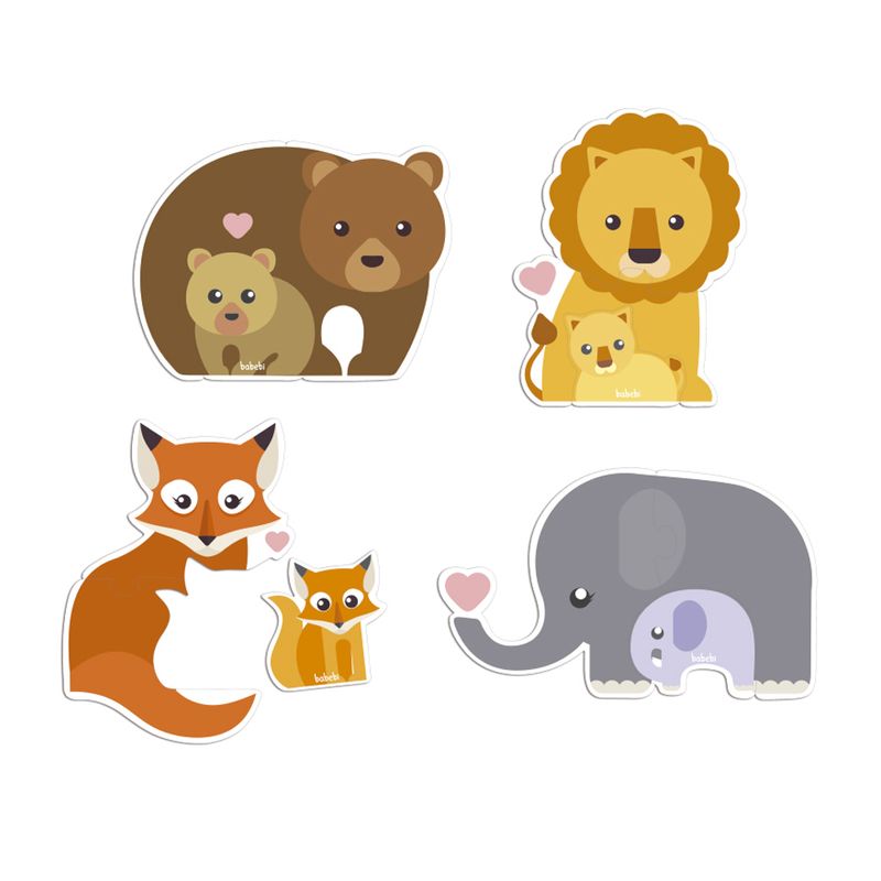 4 encantadores quebra-cabeças de 3 partes dos animais e seus filhotes. Com o encaixe das peças, as crianças trabalham a coordenação motora, associação de idéias e raciocínio lógico de forma lúdica e divertida. Contém: 12 peças com 4 quebra-cabeças de 3 partesMaterial: Madeira reflorestadaComposição: Madeira reflorestadaFabricante: BABEBIEmbalagem: Caixa de papelãoDimensões do prod. embalado: 21 x 19 x 4,5 cmPeso aprox.: 0,285 kg A partir de 2 anos Garantia: 3 (três) meses*Evite molhar o brinquedo, sua matéria prima é madeira e pode vir a danificar.**Pode ocorrer variação nas cores ou detalhes das imagens apresentadas para o produto. ***Pode conter partes pequenas que podem ser engolidas.