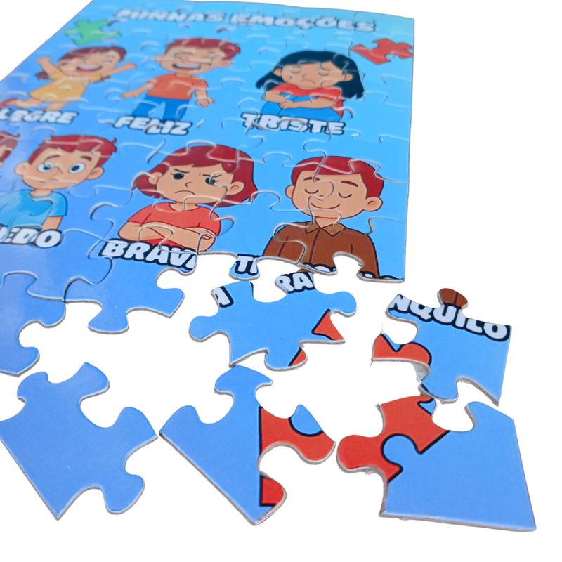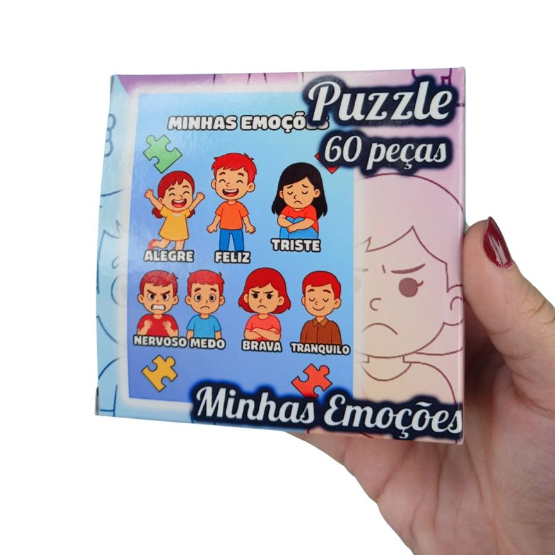 Cada peça se encaixa para formar imagens que representam diferentes sentimentos, ajudando a criança a identificar, nomear e compreender melhor as emoções que vivencia no dia a dia. Enquanto monta o quebra-cabeça, ela não apenas exercita a concentração, a coordenação motora e o raciocínio lógico, mas também aprende de forma prática a reconhecer suas próprias emoções e as dos outros.