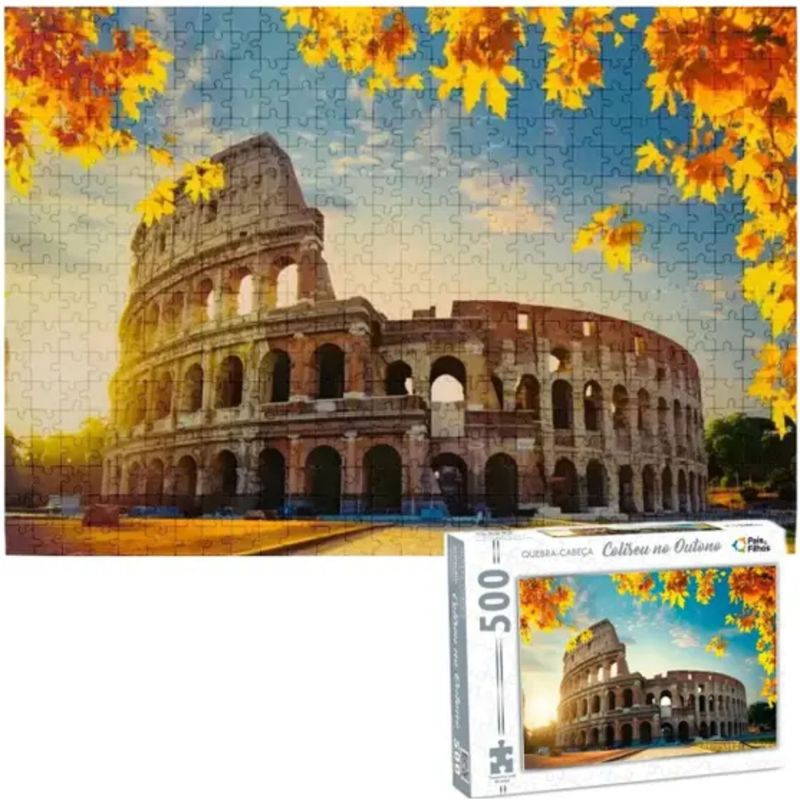 Quebra-Cabeça Coliseu no Outono – 500 Peças Reviva o esplendor da Roma Antiga com este quebra-cabeça de 500 peças que retrata o Coliseu em um cenário de outono. As tonalidades douradas das folhas contrastam com a imponência da arquitetura, proporcionando uma experiência envolvente e visualmente marcante. Além de ser uma atividade prazerosa, o quebra-cabeça estimula o raciocínio lógico, desenvolve a coordenação motora e promove habilidades importantes como concentração, paciência e percepção visual. Características do Produto: Contém 500 peças Dimensões do jogo montado: 54 cm x 37 cm Material: Papel cartão de alta qualidade Cor: Colorido Idade recomendada: a partir de 7 anos Medidas da embalagem: 26,5 cm x 20,5 cm x 5,5 cm Peso: 319 g Este quebra-cabeça é ideal para quem aprecia desafios e deseja se conectar com a história e a beleza de Roma de forma divertida e enriquecedora.