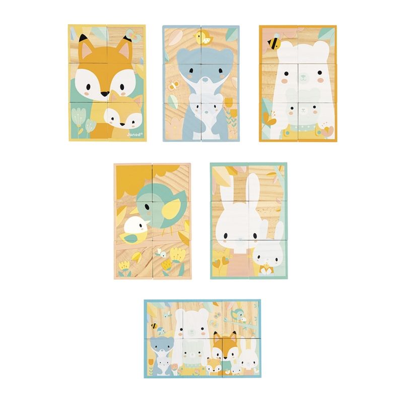 Lindos blocos de madeira maciça para bebês! Adoramos as doces ilustrações de animais da floresta, impressas em tons bem suaves na madeira natural. Este belo jogo de aprendizagem precoce da coleção Pure oferece ao bebê uma introdução aos brinquedos de manipulação e, uma vez acostumados com as formas, eles podem tentar reconstruir as cenas nos 6 blocos. Eles descobrirão os 6 retratos de animais com seus bebês, cada um mais fofo que o outro: urso, raposa, coelho, doninha, veado e uma cena em que todos estão reunidos. Como parte deste jogo de construção de aprendizagem precoce, as crianças serão incentivadas a desenvolver sua coordenação, habilidades de observação e memória visual.