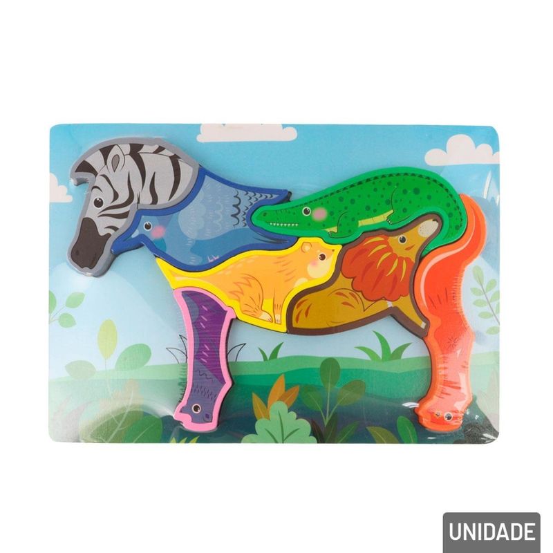 Produzido em madeira resistente com pintura atóxica, o quebra-cabeça é ideal para crianças pequenas, oferecendo segurança, durabilidade e aprendizado lúdico. Cada modelo apresenta um animal diferente, como leão, elefante, girafa, tartaruga, entre outros, tudo em formatos simples e atrativos.