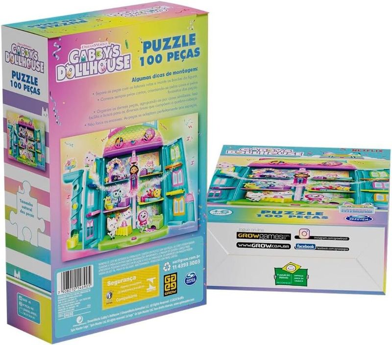 -Este lindo quebra-cabeça da Gabby's Dollhouse possui efeito glitter, muito mais brilho e delicadeza na imagem. -Não deixe de brincar e se divertir com este quebra-cabeça! -São 100 peças, para você encaixar uma a uma até formar uma linda imagem. -Mais que um passatempo divertido, os quebra-cabeças desenvolvem o raciocínio, relaxam e se transformam num autêntico hobby. -Além de um excelente passatempo, de juntar a família e de melhorar a concentração, os Puzzles Grow também se tornam lindos objetos de decoração. Características: Marca - Grow Cód. 4690 Quantidade de peças - 100 Orientação - Horizontal Tamanho da imagem - 36,3 x 24,4 cm Idade Recomendada - +6 Anos